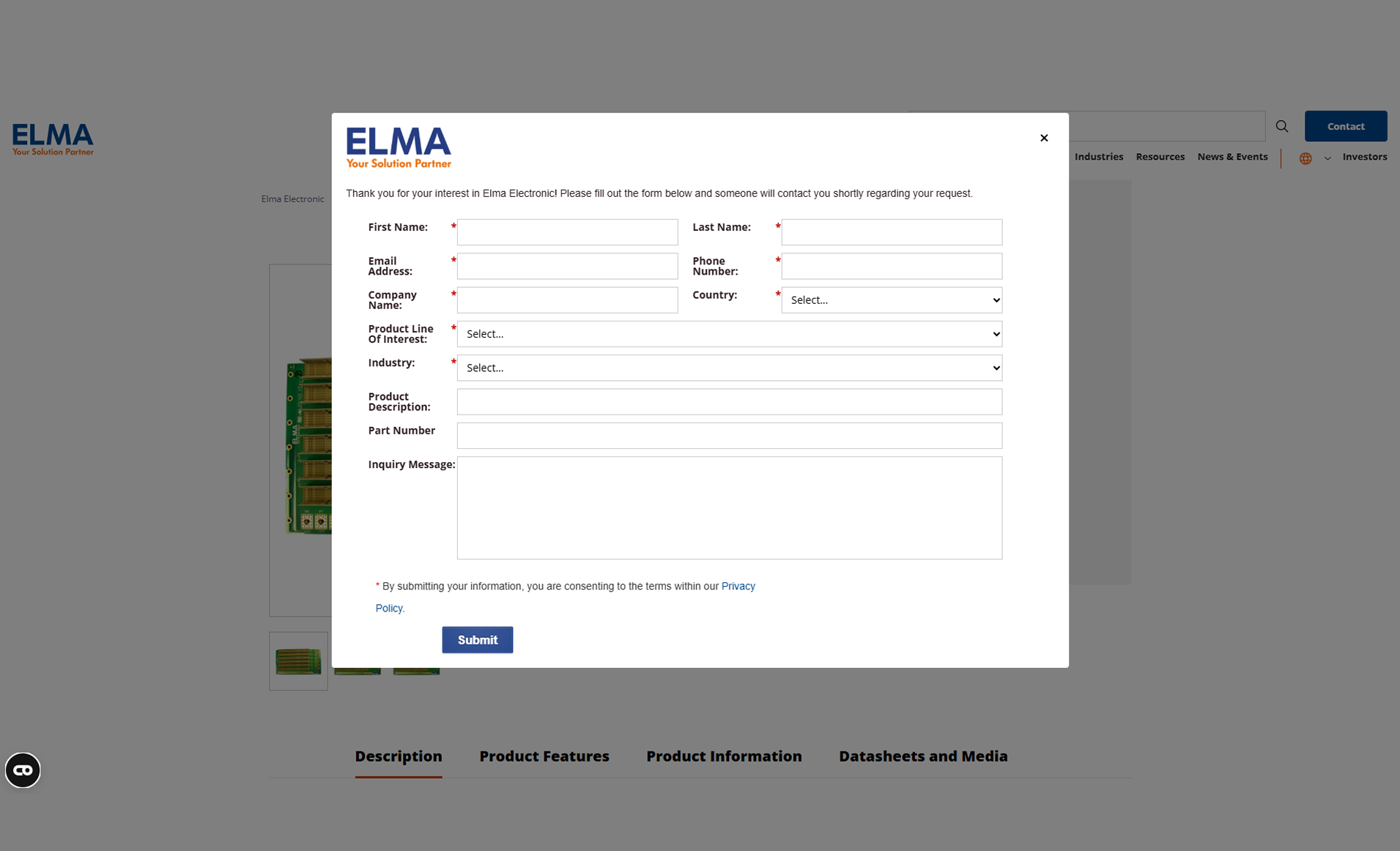 Elma needed a functional “Request Info” popup form on product pages to collect customer leads. The form needed to work across all browsers, avoid conflicts with ad blockers, and fail gracefully when JavaScript was disabled or blocked.